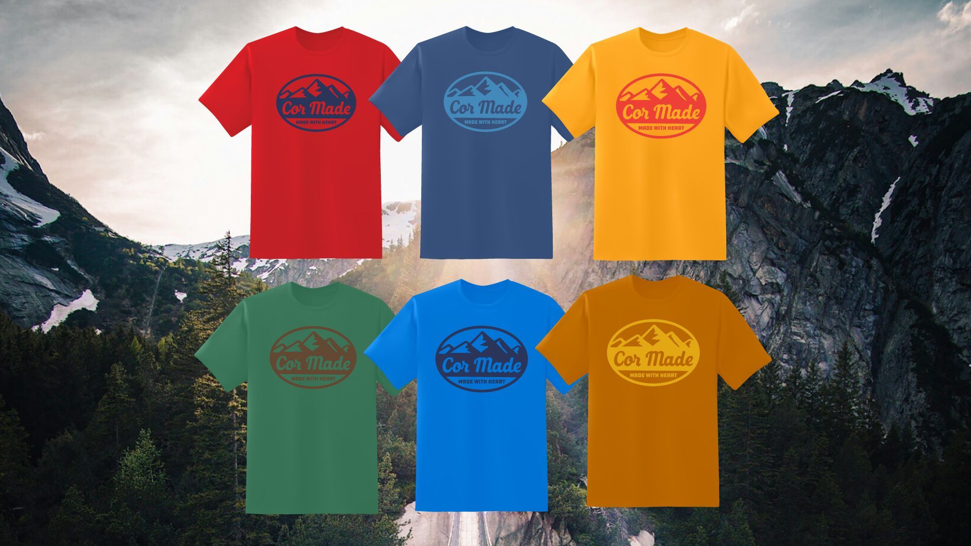 Cor Made is a start up outdoors company looking to create a community of hikers, fisherman, campers, and nature enthusiasts. They were looking for a clean design that had a badge "park ranger" feel, incorporate their backyard mountains, and pull in an Americana tone.